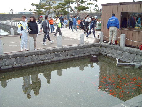 だて歴史の杜公園の堀には金魚が一杯