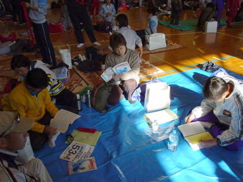 日新中学校の体育館にて