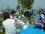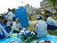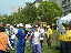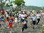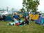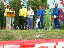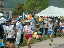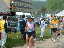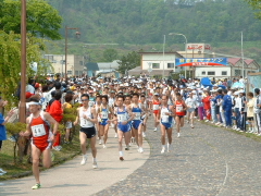 | 大会当日は晴れなのだが、何かスカッとしない天気 やはりシベリア火災のせいか? 朝方は涼しかったが、だんだんスタート時間が近づくにつれ気温 も上がってきている(これ以上上がらないで欲しいな) AM8:00車中泊をした駐車場から会場に向かうと、すでに数名の 仲間が話し込んでいた。ん?あれ我クラブの旗がない・・・ 高谷会長がめずらしく忘れたらしい、旗がないとなんか寂しいな。 9:40スタート予定なのでまだ時間的に余裕がある。Tシャツを 出してゼッケンをつけるが、隣で高谷会長が「あれ?ランシャツ着 ないのかい?」 そうなんです、最近はよほど熱い時期の大会じゃあない限り、 ショートスパッツとTシャツが僕のレースウェアです。 そろそろ、アップでもと妻と一緒にウォーミングアップ、途中でトイレ タイム。会場から外れるとトイレもスカスカ、待ちなしでした。これで いくらか軽くなったか?