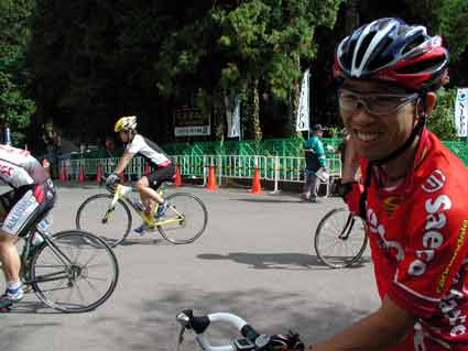 ツールド沖縄、全日本選手権優勝、海外レースでの優勝と輝かしい成績を持つ。エリートスタート前の1コマ