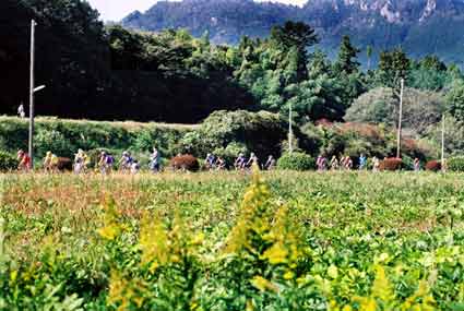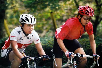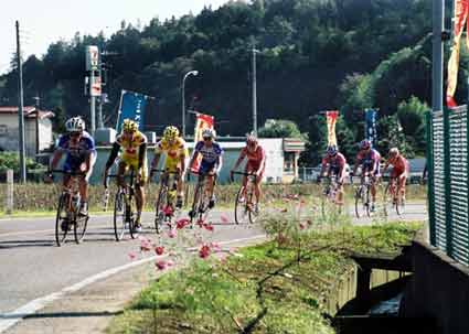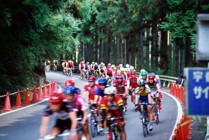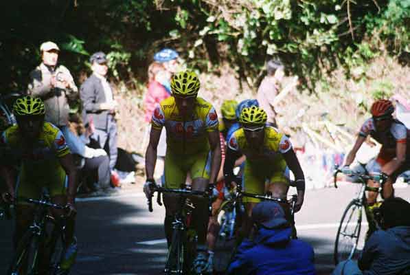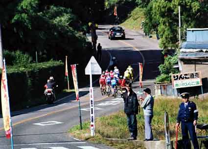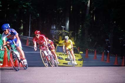 後ろに見える黄色いジャージは真下正美(スペシャライズド)