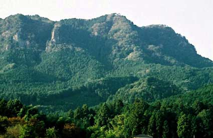 古賀志山。切り立った熔結凝灰岩の地肌がその険しさを引き立たせる。