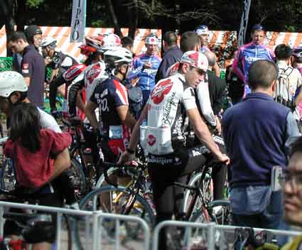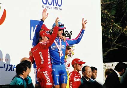 このジャパンカップをもって2004年のUCIレースが幕を閉じる。選手達は不要なウエアを即売するのです。