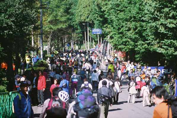 選手がスタートした後は、多くの人が古賀志林道へと向かう。