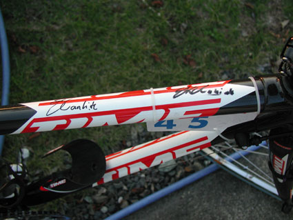 写真 トップチューブにサインを貰う。2箇所あるけど、両方ともB.タンキンク(クイックステップ)のもの。