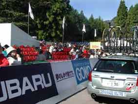 チームカーにもレガシーワゴンGTが支給されている。勾配10%以上のつづら坂を選手に混じって下るには、アグレッシブなドライビングが求められる。商用車では使い物にならない。