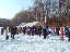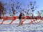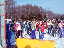 | この日はご覧のような真っ青な空の元にくっきりと駒ケ岳がそびえ立ち、「これぞ大沼!」っていう感じで、最高のロケーション。 クロカンキッズからはスキーハイクに2名、2時間タイムトライアルに17名が参加。参加メンバーは雪不足のため練習不足にもかかわらず好調の様子で、自己ベストが続出でした。 |