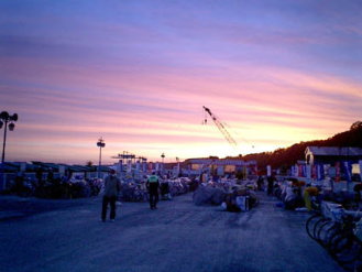 計測マットを通過すると、大会ボランティアがバイクを引き受けてくれ、代わりにラン用の荷物の入ったトランジット・バッグが渡されます。このバッグは、早朝に受付で渡しておいた物で、ランシューズや、サプリメント、着替えなどを入れてある。バイクゴール200m手前で通過者をチェックし、無線で連絡を入れて滞りの無い様にバッグを準備してくれているのです。 バッグを持って更衣室へと急ぐ。昨年までは、制限時間に近いタイムでバイクを終了していたため、更衣室は野戦病院の様相。諦めモードの人もいて「この空気に呑まれてはいけない」という感じでしたが、今年のタイムでバイクゴールをすると、「これからランで稼ぐ!」という力を残した選手が多く、皆トランジットが素早い。例年は日没後の気温低下を予想してTシャツに着替えることが多いが、今年は歩かない覚悟を決めて、そのままノースリーブのトライウェアでランをスタートした。北海道は日没後、ぐっと気温が下がり、歩く選手には寒い。消耗し切った身体に、この寒さはかなりこたえるのでございます。