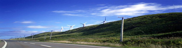 風の大地 僕の今年の目標は、オロロン完走だけではありません。バイクパートの6時間切りでございます。オロロンのバイクパートで6時間を切って走る選手は1〜2%にすぎません。昨年11月から今日までのバイク練習距離5000km。(少ない?)三本ローラーでの回転スキルアップ、ロングライドでの持久力トレーニング、総合力をつけるために1500m級の山岳を何度も走った。結果は如何に! バイクパートを6時間未満で走りきるためには、平均時速33.5km以上で走らなければならない。 ここオロロンラインは風が強いことで有名。発電用の巨大風車群があちらこちらに建造されています。力昼(りきびる)は、単一箇所では全国一の風車建造数を誇ります。風車といっても、一基の高さは、60m以上。およそ20階建てのビルに相当。羽根はコンピュータ解析された翼状断面。発電効率を上げるために緻密な計算によって作り出される芸術品。ドンキホーテが怪物と思った風車も、現在では翼の直径が75m以上という超巨大物に成長した。 優雅に回る風車、この翼を回す風はかなり強力。この風は毎年、遠別町(110km)辺りまで追い風となり、選手を後押しします。追い風は、バイクにとってかなりのアドバンテージとなりますが、天塩町(てしお)130km付近からは、風向きが一転。向かい風となり選手を苦しめることが少なくありません。いかに追い風が吹いている間に平均速度を上げられるかが完走・好成績のポイントとなります。追い風を強く受けるところでは、時速40km以上で走ることができ、トップ選手は時速50km近い速度で走っています。緩い登りなら時速30kmが出るくらいです。ちなみに、力昼は苫前町にある地名。この他にも濃昼(ごきびる)という不思議な地名もありますが、クエンティン・タランティーノ監督作品KILL- BILLとは何ら関係無ありません。(おいおい・・・)個人的にはユマ・サーマンは好きですけど。 photo3:苫前町力昼の発電風車。丘の上には数十基の風車がそびえたちます。