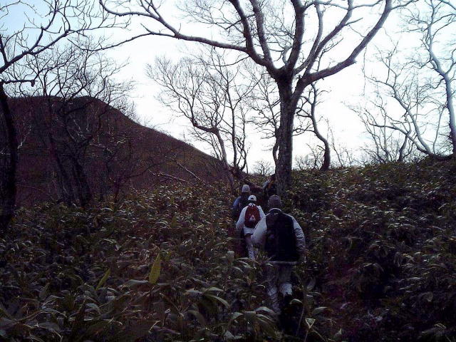 笹薮の中を掻き分けて袴腰山頂を目指す