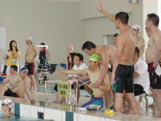 4時間耐久スイム駅伝はもう10年ほど前から続いているのだが、函館地区は第1回目に函館トライアスロンクラブ1チームだけ参加したことがあるが、それ以来開催していなかった大会である。![]() 当初2チーム位が集まればいいかなと思っていたが、新聞に掲載したところ思わぬ反響があり、コースと予算の都合もあり4チームが参加と言うことになった。参加をお断りをした方には本当に申し訳ないことをしました。 この大会は北海道トライアスロン連合の主催で、各地区連合が同日開催ということになる。多分札幌、旭川、十勝、函館4地区での開催になると思われる。 総合記録が分かるのは5月になりそうだ。(えー、このご時世に?といわれそう・・・) さて、参加チームの紹介であるが、我函館トライアスロンクラブ(以下函トラ)からは、選りすぐりの清栄達を集めたAチーム(実際はたいしたことはない・・・助っ人さんは別です)、そ・れ・な・りの実力を持ったメンバーと助っ人のBチームの2チームを選出。 水泳では本家本元の函館マスターズスイムングチームは、68歳とは思えぬ強靭な肉体とスピードを持つ高橋会長引き入るツワモノ軍団である。 もう1チームは、水難レスキューのプロ軍団、消防チームである。こちらも普段から肉体作りに余念がないのか大胸筋ガッチリのメンバーばかりで、侮れないチームである。 以上4チームがエントリー。 ![]() 函トラAチームは、紅一点のスナオちゃんが数日前から熱を出し、参加が危ぶまれたため、急遽マスターズのNさんを代替参加でお願いしたが、スナオちゃんが開会式前にひょっこり現れた。 「熱は大丈夫なの?無理をすると後が怖いよ」という質問に「えー、何とか大丈夫です。是非参加させてほしいです。」との返事。この熱意に負け、実行委員の棟方さんが「いいよ、俺抜けるわ!」とあっさり交渉成立。本当のこというと棟方さんはあまり練習をしていなかったため、渡りに船と言うヤツらしい・・・。 開会式を終え10時にプール入り、30分のウォーミングアップなのだが、スタート10分ほど前には選手達はアップ完了となり、臨戦体勢充分。タニさんの「時間早いけどもういくべ!」の一声で予定より5分前にスタートすることになった。 「3.2.1.ピィー!!」ホイッスルの合図で4チームの第1泳者が一斉スタート!函トラAは強力助っ人、Y野さんすごいダッシュです、函トラBはトライアスロンでは百戦錬磨のタニさんがマイペースで泳ぎだします。 泳ぐ順番はそれぞれのチームで作戦を考えて組み立てたのでしょうね。 今大会の特徴は、最年少は10歳の女の子ミホコちゃん、最年長はマスターズの高橋会長の68歳と幅広い年令層での参加ということです。 30分ほどして新聞社2社が取材に来ました。やはりインタビューは最年少と最年長のお二人でした。翌日の夕刊に掲載するらしく、結果を今日中にFAXしてほしいとのこと。どんな内容か楽しみです。 1時間の中間報告では、函トラAとマスターズが300m差、函トラBと消防が250m差とそれぞれ接戦です。4時間の長丁場、持久力が物を言います。 ロングレースが得意の函トラAとスイム本家のマスターズ、片や日頃体力の造り充分、パワーのレスキュー隊とパワーはないが持久力勝負の函トラB、それぞれレースの行方がたいへん面白くなって来ました。 中盤までは、和やかな雰囲気でのスイム駅伝、しかし後半に入るとだんだん疲労も出てきたのか、選手、ボランティアも口数が少なくなってきたようです。 函トラBで注目を浴びたのが、新人高見選手と助っ人森選手、最初のタイムより中盤のタイムがグーンと伸び、なんと30秒アップだって、なんだぁこのタイプアップは?!函トラBの親分タニさんが選手にノルマを課す、檄を飛ばす。 佐藤さんはヒミツ練習でもしてたのか、安定した泳ぎである。シンチャン、ヒロコちゃんはスイム練習会にきっちり参加した効果が出たのか、本番でも以前よりフォームが良くなっている。 冷やかされたのが相馬さん、後半お疲れで平泳ぎに変えたら「何だ相馬さん、クロールより平の方が速いんでしょ!」 函トラAの方はと言うとこちらは極端なタイムの落ち込みはないようだ、自分は一本目は2:49で終わったのだが予想以上のタイムである。しかしそんなに続くわけもなくコンスタントに2秒ずつ落ちていった。それでも3:03がMAXだったので、まあまあの出来か。平均すると3分はきっているのかな?あとで集計しえ見るとしよう。 スナオちゃんは、朝のボーっとした感じから比べるとだいぶ調子が上がってきたようだ。しかしいつみても綺麗な泳ぎで惚れ惚れするなぁ。クイックターン後、バサロでスィー、スィーッてな感じで軽く5mラインを越えてしまいます。 消防チームで注目は、やはり小学生スイマーのミホコちゃんであります。大の大人がいくら頑張ってもかなわないのです。タイムを見ると2:40秒台ですもんね。隣で一緒に泳ぐと、何とか抜かれないように必死で泳がなければいけません。あの、か細い体