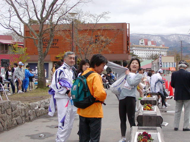 チームのみんなが出迎え、健闘を称える