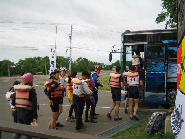 NACのバスに乗り込み、スタート地点の喜茂別まで移動します