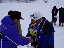 こんばんわ!(ヒロコです!)さん!夕暮れの産業道路、見知らぬ人々の繰る多くの車列の中、長く伸びた影をひきずりながらスキーを抱えた2人の横断。 別れの車でピリカでの互いの健闘を称え「今度貴女と会えるのはいつ?」と涙してから早くも1週間が過ぎてしまいました。 今はもう腫れたまぶたも癒えました。あの秋の日に後ろから受けたプレッシャー。いや、見えながらも徐々に離れて行く雪原の悔し涙を鼻で吸って口で出した苦い思い出。 何故か貴女の力強いやさしさがバイクやスキーの姿で前後に現れる。しかし、しかしです、今回は違った!視界に無かった。いや居られたのですがいつもと違ったポジションでした。「ワ〜〜〜イ!」なんてね。 参加の皆様お疲れ様でした。とってもハードな前夜(日帰り札幌の列車が遅れに遅れ午前2時30分着)自宅で眠りについたのは午前3時過ぎ。 ![]() 救われたのは、特急券の払い戻しと、この大会に誘いながら本人は出場が叶わなくなった丹羽先生が一緒で退屈しなかった事でしょうか。 午前6時10分起床。そりゃ無いよ!って気持ちで目を擦りながら集合場所へ。 相馬さんとなべチャンにテキパキと手伝ってもらって荷物を移し、なべちゃんの後部座席、哲学者の趣きを醸し出す塚谷さんの隣に座る。 そんな訳で失礼ながら早速ゆったりめの車の中で背中を伸ばし睡眠体制に。これが無かったら、自力だったら、きっと参加をパスしてたね。そして「目を開けるとそこは雪国でした」。 初めての「今金」最高でしたよ。スタート前に「ふれあい大会」を強調する挨拶に、思わず「だから触れ合おうよ!」と「ヒロコです!」氏に訳の解らない事を言ってるうちにスタート(もしかしたらこのせいで近くに現れなかったのかも・・・・)の合図。 とにかく「走りきる!」を目標に1周目は体力の確認とコース調べ。 直ぐにバラツキ置いてかれる。ワックスのせいにしたかったが無理があった。小柄な小学生が終始傍を滑る。平地で離され、坂道と向かい風で追いつく。 彼はほとんどストックを使わない。使えない?つまりほとんど「クロカンキッズ罰ゲーム」(ストック無し)状態。そのスケーティングの技術に恐れ入る。実況放送から察するに、どうも小学校の部1位を走ってるらしかった。 8の字コースのせいで多くの仲 間にも会える。大きく声を掛けられる。後方ポジションのくせに、こしゃくに「がんばれ!!」なんて答える私。そんな中、途中抜いたはずの渡波さんに追い越されれる。前からクロカンに入れ込んでた方ではないはずだし、髭のアスリートに追い越されるのは半田さんだけでたくさん、小さな希望と欠けたプライドを引っぱり出し「ガンバラねば!」と再度追い抜く、再再度の追いぬきを警戒するあまり一生懸命スキーを滑らす小心者。 これが功を奏して2週目ゴール近く、スタートゴールの広場が間も無くの地点で、歩くスキー集団の中に異質な滑りを1名発見。 同じ組では?もしや、もしやと更にペースを上げる。 同じ組と確信する。「う〜〜〜ん!厳しい!」しかし、間も無くゴールする広場には男性軍の仲間が何故か先に着いてる(ま!早いからと言う極めてシンプルな理由だが)。 右45度前方にその集団を素早く発見。左前方の1名も視界には大きくなってる。「行け〜〜!俺はこれでも大滝国際スキーマラソン15Km完走者なんだ〜〜!何しろ国際が付いてんだ!」と自らに言い聞かせ、ひたすら飛ばす!飛ばす! ゆるい下りも功をそうして、ぐんぐん近づく!ゴール間際で抜き去れば「ドラマティックだ!」「最高だ!」の予定・・・・だったが叶わず。いや、それどころかゴール直前の最終右カーブで転倒を押さえる為、必死にスキーをバタバタという不恰好なゴール。 ま!青春の恋愛の様に結局は届かなかったんですがね。 ![]() しかも、ゴール後間も無く身体中が酸素を要求するキツイ感覚が広がり、思わず雪面に身体を投げ出す。 しかし、坂口クロカンキッズ会長より「いい滑り」とのコメント。 皆さんにも「速かったわ!」等との賛美のコメントを頂くと、私はもう酸素無しのアルピニスト。「大丈夫だ〜〜い!」と有頂天。 改めてピリカをそして「今金」を大好きになったのでした。 我らの仲間の中では数少ないメダル、賞状も貰えないひとりでしたが、そんな一握りに選ばれた喜び?も含めて心から楽しんだのでした。 来年は確実入賞を狙って女装して出ようかな・・・・。と訳の解らぬ一瞬を夢見る皆川でした。 皆様お疲れ様!!来年も是非行くぞ!ヨロピク! |