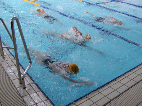 バイク、ラン終了後、午後1時からスイムパートが始まるまで1時間半ほどあるので、各自プール内で休息と準備をする。その間に終了した分の記録集計をPCへ打ち込む。 スイムは11名が2コースに分かれて泳ぐ。距離は1kmなので20往復。 6名が一斉スタートなので最初はバトルとなる。同じコースにシオリちゃんがいるので、先に行かれると後から追い越すのは困難。なるべく早めに先頭を取りたいので、スタートダッシュで一気に先に出る。 作戦が功を奏し、先頭をキープできた。その後は遅い選手をいかに効率よく追い越すか、テクニックが必要になる。時々前を見ながら追い越すタイミングを計る。タイミングを間違えると向かってくる選手とぶつかってしまい、大きなタイムロスとなる。 2度程、追い越す際に頭をはたかれた以外は、ほとんどぶつかることもなく泳ぎきれた。 ターンするたびに後ろに付いている、シオリちゃんとの距離を把握したいたが、最終2周回ほどでその間合いが開いてきたので、そのままいけると確信し、ひと安心。そしてゴール。 4時間耐久スイム駅伝の時は好調だったが、その後あまりスイム練習はできていないので、ペースはイマイチ。それでも17分台くらいだろうか。オロロンまでには少しペースを上げなければ・・・。