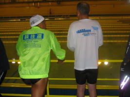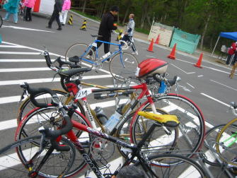 | 5/27(土) AM7:30 のんびりと出発 高速を使うと、当然速いけど3500円取られちゃう。 一般道をのんびりと走っても受付開始の16:00には余裕を持って着けるから、一般道で行きます。 ![]() 赤信号だったんで、写真を撮ってみました。 これは八雲のあたり。大きな街です。 長万部に着きました。 だけど、着いたの早過ぎ。 09:30じゃ、レストランとかまだやってないし、お腹も空いてない。 ココで、かに飯バイキングを食べたかったけど、開店まであと1時間半もある。 当然パスします。 ![]() しばらく行くと、道の駅 豊浦 なんだか懐かしいんでラムネを買ってみました。 ![]() ![]() ったくもう、 ラムネってヤツは、昔も今も周りにぶちまけないと飲めない、面倒なジュースだなぁ。 ラムネの名前は赤いしげき。赤いしげ じゃないですよ。 ![]() さてさて、海岸沿いに進んでいくと、またも道の駅。 伊達歴史の杜は、敷地がすごく広い。 ![]() 資料館の中では、刀鍛冶が作業をしていました。 ふぅ〜ん、♪しばしも休まず鎚打つ響き♪ は、最近では機械の音なんですね。 さらに走ります。 元モー娘のなっちご推薦カレーラーメンを室蘭で食べようと思ったけど、現在移転工事のため閉店中。 お腹空いたよう・・ 室蘭を通過し、登別の熊牧場も通過 ← 国道から枝道10km先 観光地巡りやりたかったけど、どうせ一人。 道の駅くらいにしか立ち寄りませんでした。 大会受付会場に着いたのは、13:00頃 室蘭で食べれなかったカレーラーメンの本店が、苫小牧にあります。 受付会場からだと12kmほど離れてるけど、行ってみました。 う〜ん、なんとも微妙。スープカレーとも違う、カレーライスのルーとも違う。 例えは悪いが、失敗して水分が多すぎたカレールー。 旨いですよ。旨いけど。 つけ麺みたいにして食べたらもっと旨いんじゃないのかなぁ? まぁ、いいや。 僕はラーメン評論家じゃありませんから。 再度12km逆送して会場へ到着。 あれ?苫小牧プリンスホテルって、西武グループじゃないんだ。 函館にも湯の川プリンスホテルってのがあるけど、これも西武じゃない。 不思議だ。西武グループからクレームは来ないのかな? ![]() ![]() ![]() で、受付開始です。 早く着いたんで、係の人が座ってません。 受付後は、開会式&競技説明会。 元オリンピック選手の橋本聖子さんが、挨拶をしていました。 で、説明会の後は前夜祭をしないで早めに寝ました。 泊まった宿は苫小牧サイクリングターミナル。 この宿、5月末だというのに暖房が入ってました。 暑くて寝苦しかったけど、まぁなんとか就寝しました。 さて、レース当日。 前夜の天気予報は09:00までの降水確率50%。 ![]() バイクが終わるまで雨降らないでおくれ。 トランジッションエリアへ自分のバイクを置きます。 214番が僕の番号。 Aタイプ第1組、スイムの準備が進んでいます。 こんなウルトラマンがフツーに佇んでいます。 左の人は250kmを、右の人は100kmを一人で走り抜いたあかし。 風格を感じます。 雨が降らないように念じた思いは天に届かず、 そのうちに雨が強くなってきてしまい、結局、バイク競技は中止に。 ってことで、僕のレースはスイム1.0km、ラン8kmのみになりました。 ![]() 緊張のスイムは、1コースに3人だけ。 杉村さんも同じコースです。 スタートの後も、いつものペースで泳ぎます。 相変わらず遅いけど、急に速く泳げる訳がない。 自分の実力どおりのペースで、着実に距離を稼いでいきます。 でも、400mの折り返しのとき、1位の人が勢いよく走り出していきました。 げっ、まだ600mも残ってるのに、もう終わっちゃったのかい!? とはいえ、焦ったからって速くなる訳はない。 ![]() 800mの折り返しのときには、係の人から 「もう真ん中泳いでいいよ〜。誰もいないから。」なんて言われちゃいました。 まぁ、いい。 あと残り200m。 スイムが遅いのはレースに出る前から分かり切っていたこと。 遅いながらも身体を前へ進めていきます。 1000m泳ぎ切ったとき、係の人に言われました。 「大丈夫。あと3人残ってるよ。」 よしよし。ビリじゃないジャン。 これから頑張っちゃうよ。 スイム後、上半身裸で走ることはできない。 ゼッケンの付いたシャツを着る必要がある。 濡れた身体でシャツを着るのは難しい。 アチコチにシャツがへばりついて、なかなかスムーズに着られない。 さらに加えて、古傷を抱えた右膝へもサポーターをしてあげなきゃいけない。 ランシュー紐もシッカリと結ぶ必要がある。 スイムで遅れを取った僕には、この短い時間が、すごく長く感じられました。 ランスタート 下り坂で3人抜いた。 左折後の一般道平坦地に出たら、前に誰も見えない。 見えるのは折り返して帰ってくるランナーだけ。 再度左折し、高丘霊園で女性ランナーを一人パスした。 舗装路が終わり、未舗装路へ出てすぐ、また一人抜いた。 高速下のトンネル付近で折り返してきた杉村さんとすれ違いました。 「速いなぁ杉村さん・・」 折り返し点から高丘霊園出口まで