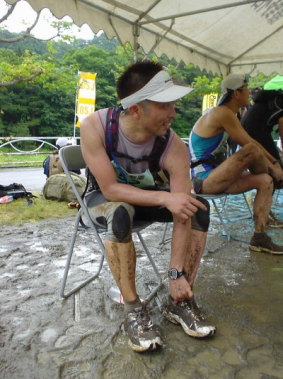7月3日の夕方、無事帰函しました。![]() この大会は大会長が言ってたので間違いないと思いますが、「富士登山競争」(標高差3000m 距離21km) 「日本山岳耐久レース(ハセツネ杯)」(制限時間24時間 距離71.5km)と並んで3大山岳マラソンだそうです。 北丹沢は制限時間は12時間。高低差1,140m、距離は43.86kmです。 制限は12時間なんですが、第一関門(18.44km)を4時間半、第2関門(29.04km)は6時間で通過しなければ足切りされてしまいます。 実際の出走者は分かりませんがエントリー1,200名で完走者は869人でした。 スタート時の気温は23度で道産子の僕でも涼しく感じました。 幸いレースが始まっても、気温はそんなに上がらず暑さにやられることはありませんでした。 午前7時にスタート、最初は舗装されたアスファルトを走行して、2kmくらいですぐに登山道に入りました。当然、登山道は人一人がすれ違える程度の 幅しかなく、入り口で大渋滞。ここから約1,000人一列棒状状態の息が荒い団体登山の開始です。傍から見ていたら、結構笑える図式だったと思います。 2つ目のピークを過ぎて長い下りの最中に土砂降り(台風かと思いました!)の雨&風。 林道を走行中は逆に雨が気持ちよかったのですが、3つ目の姫次(1,433m)の登山道は登りが泥水の川、下りは思いっきりゆるい粘土状態で、普段の練習用ランシューズで出場したので、かなり苦戦しました。 ![]() トップの人は登りもそれなりに走っていると思いますが、僕クラスだと登りは早歩きがやっとでした。下りはそこそこいけたのですが、後ろから飛ぶように下っていく女性に越された時はスキルのなさを痛感しました。 エイドには基本的に水しかなく第一関門エイドにバナナとなぜかキュウリが置いてあるだけで後は自己責任の世界でした。 僕はパワーバージェル5個、アミノ酸サプリメント2個 カロリーメイトのハーフを1箱、チューブの練梅、エイドでバナナ1本、それに水をハイドレーションバッグに補給含めて4Lでした。 今は、「パワーバーしばらく見たくない食べたくない病」です。 http://allsports.jp/ 上記URLで7月5日から写真が公開予定になっています。 パスワードは 8550 レース結果はこちら RUNNET大会結果 ゼッケンは452で〜す♪ |
