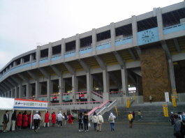 40キロ地点で、3時間をわずかに切っていた。3時間10分を切れる?ちょっと欲が出た。瑞穂競技場が見え始め、ゲートをくぐる。