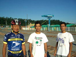 〜BIKE〜 ちんたらトランジションを済ませてバイクスタート。ここからが長い道のりの始まり。最初、速度が表示されないことに気付くが、一旦停止して直す。 最初の55kmはほとんどアップダウンのない平坦なコース。30kmちょいぐらいで走る。 途中留萌で強烈な向かい風に遭うが、それもすぐ終わる。 バイクスタートから60km地点を過ぎた辺りから約60kmの区間はアップダウンが続く。国道6号線で練習しておいたおかげで、上りは意外とスムーズにかわせた。 120km地点を過ぎたところでアクシデント発生。なんとバイクジャージの中にハチが飛び込んでくる。胸を軽く刺されたが、大事に至ることはなかった。びっくり。 しかし、この後天塩の風車群を過ぎるあたりで軽くつぶれ始める。 サロベツ原野に入ったところは追い風で助かったが、それ以外の出来は惨憺たるもの。 幌延の折り返し地点を過ぎるたところでつぶれかけるが、アミノバイタルを駆使して何とか復活。 向かい風もドラフティングまがいの走りで切り抜ける。 190kmぐらいまで来ると、あと少しだという気持ちで加速(後で考えてみると、スピードが落ちたのはギアを一枚落としたままで来たせいかと思う)。 そしてバイクゴール。やっと終わったが、まだこれから...。 〜RUN〜 トランジションで大分前に抜かれた函トラの人に追いつく。 ついでにバイクでつぶれたという早稲田のインカレ選手にも追いつく。 もしかしたらいい感じなのか?と勘違いし、補給をとって元気よくランスタート。最初の10kmはほとんど平地。 だが、この北限のレースにはあるまじき暑さ。28度が厳しい暑さに感じられる。 約2.5km毎にあるエイドで毎回水を体にかけながらじりじり進む。 ちんたら進んでいたら早稲田の選手にもあっという間に抜かれる。10kmをこんなに遅く走ったのは久しぶりかもしれない。 10kmを過ぎる頃からオロロン名物のアップダウンが始まる。どんどん足にダメージが蓄積される。15km過ぎから日も落ち始め、大分涼しくなってはきたが、自分のペースは上がらない。それでも歩くことなくちんたらちんたら走り続ける。 中間地点でヒロコさんに抜かれるが、「12時間切れるよ」の言葉に気持ちを奮い立たせて残り20kmへ。 エイドを小ゴールにし ながら気力で走る。。。 残り10km地点まで来ると「いつものランコースを1往復だ」という気になる。暗くもなり始め、精神的にもきつくなってくる。 5kmを過ぎてそろそろスパートをかけたくなってくるが、もはや足に力は残っていない。 最後の3kmの表示が見え、気持ちだけはラストスパート。しかし、残り2kmの表示が全く現れない。こんなに1kmが長いとは思わなかった...。 ラスト1kmの表示を過ぎたところで、とうとう高谷さんにも捉えられる。 あっという間に抜きさられるが、それを機に自分も本当のスパート。 まともに走れたのはこの最後の500mだけだった。 そして、感動のフィニッシュ。長い戦いだった。 〜総評〜 完走が目標だったので、当初の目標は達成できた。一応ランでも歩かなかったし。いまいちな合宿の成果も発揮できたと思う。 ただ、バイクとランがあまりに弱いことが分ったので、反省点の多い大会でもあった。 今後はこまめにランとバイクの練習をこなしていくべきだろう。特にランは足が残っていなくてもしっかりしたフォームで走れるようにしようと思う。 それにしても、沿道の応援&ボランティアスタッフには本当に助けられた。応援とはここまで強力なものなのかということを改めて認識。心から感謝である。
