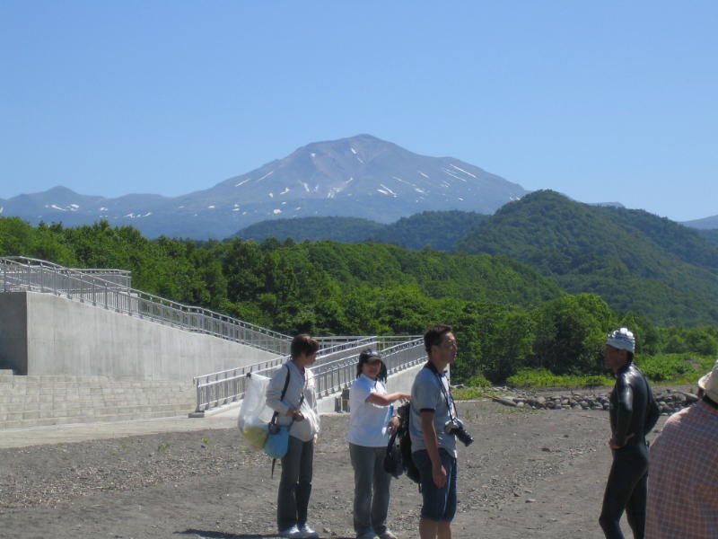 ダムから旭岳がくっきり見えます、天気もいいし、いやーいい眺めだ