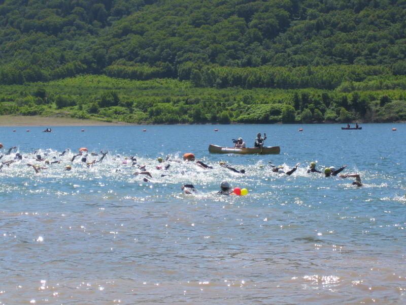 ベルト(ゴム?)でつなぎ平行に泳ぐそうです