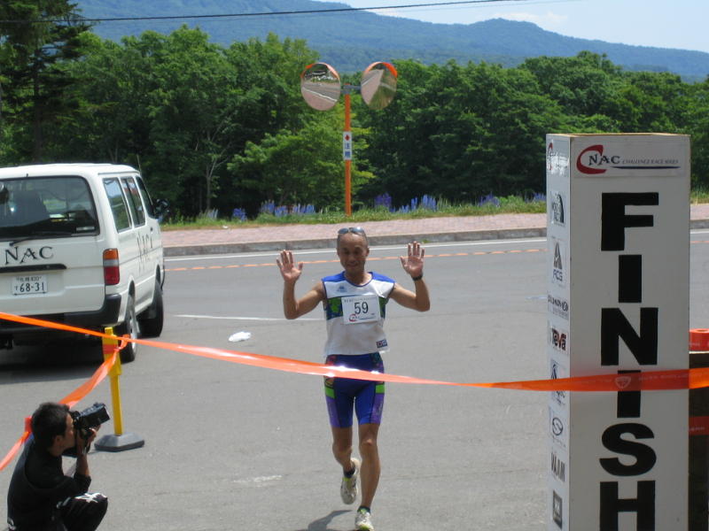 こちらデュアスロンの部の選手がゴールです