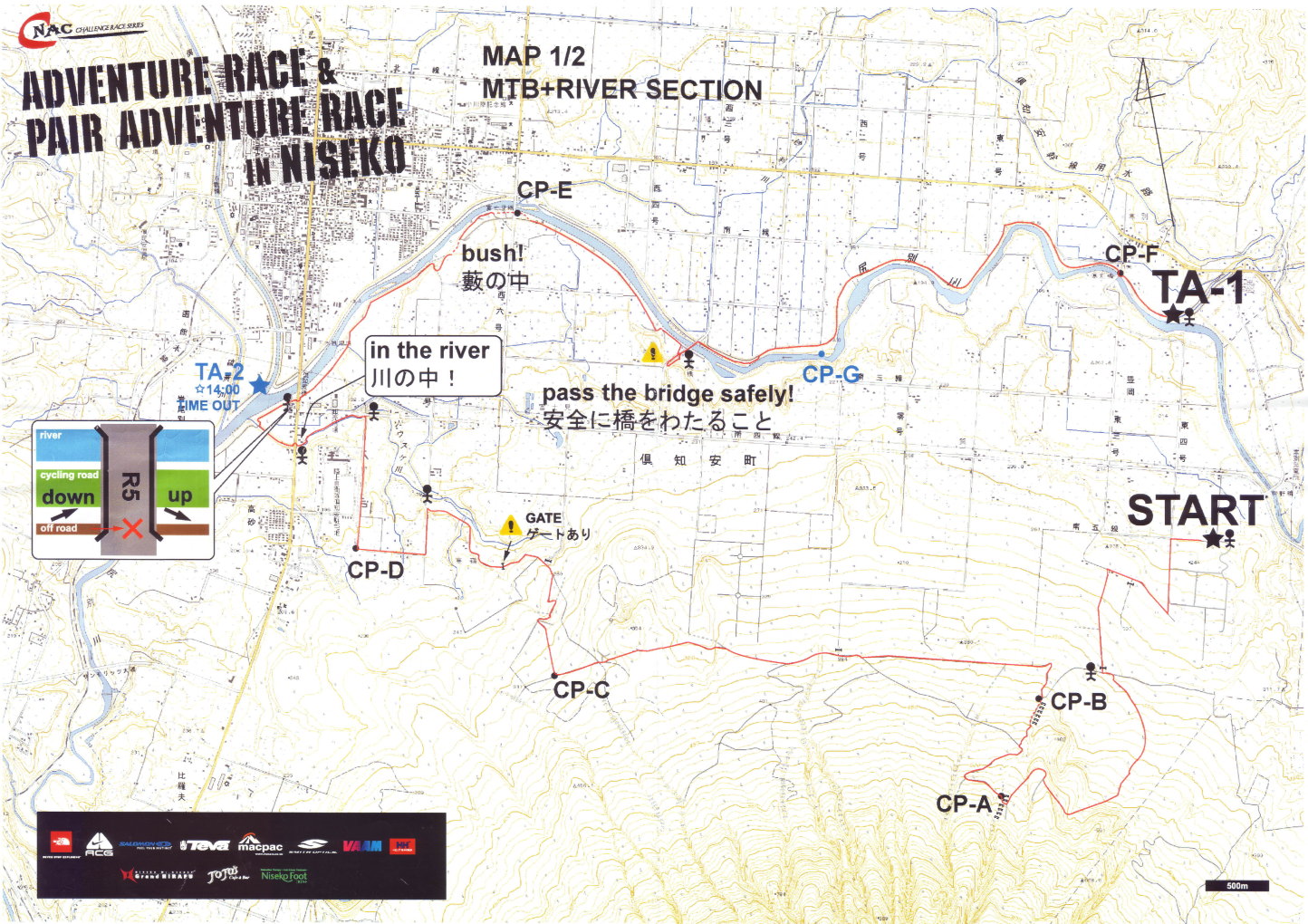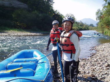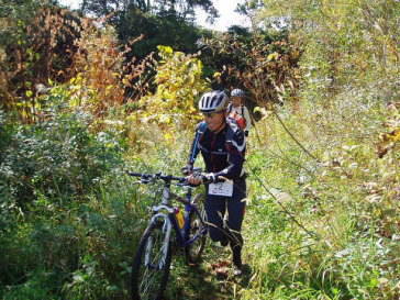 10月6日(土) チームリーダーのMAEさん(以下Mさん)、シンちゃん(同Nさん)ヒロコちゃん(同Hさん)と、応援&サポート役のひとみさんと、5名で函館を10時30分に出発しました。 ニセコアドベンチャーセンター(NAC)に午後3時に到着。早速受付を済ませ、預託するバイクを組み立てる。 そこでNさんがHさんのブレーキシューが残り少ないのを発見!用意周到のNさんの新品シューと交換し、事なきをえる。 その後、少し時間を置いて競技説明、ラフティングの説明、スタッフ、チーム紹介と進んだ。 そこで問題発生!約100名の中からふたりに選手宣誓をしてほしいを云うのだ。 そのひとりになんと、我がチームのNさんが当たってしまいました。考える間も与えられない険しい難関でしたがNさんは見事クリアしました。 この後自主参加のゲームがあるのだが明日の用意もあるので我がチームは不参加。レースの準備、夕食、ミーティングと慌しく済ませ、早めに就寝した。 10月7日(日) NACに7:00集合。 バスに20分ほど揺られ現地に到着。 ![]() MTB編 8:00 林道からアドベンチャー17チーム、ペアアドベンチャー13チームの94名が少し迫力のないホーンを合図に一斉スタート。 込み合っているので落車に気をつけ、はぐれないようにお互い声を掛け確認しながら進む。はじめは緩やかだった坂も2Kmほど進むといきなりガツンと10%以上の激坂が待っていた。 路面に砕石が敷いてあるのでゆっくりトルクをかけないと空転してしまう。乗るのも押すのもスピードは変わらないので体力温存の為押し歩く。 我々男性陣もきついがスロースターターのHさんの呼吸が荒い。かなり辛そうだ。 何度か乗り、押し歩きを繰り返し、いよいよシングルトラックへ。(後で分かった事ですがこの時点でもはや間違っていたらしい) もうバイクが乗れる状況ではない、完全に登山道です。 押し、担ぎ登っていくと数チームが迷っていました。(そりゃそうでしょ!ミスコースだもの・・・) 道が無い!地図上の方角だけを頼りに斥候Sが付近を探索。「あった!」 熊笹に入り口が覆われた小さな沢を発見!(だから・・・間違いだってば・・・) 苔の生えた3,40センチの岩がゴロゴロしている沢をバイクを担いで登り進む。 数十メートル行っただろうか?先の見えないウッソウとした沢なので余りにも不安になり沢の上へエスケープ。上からロープでバイクを引き上げる。 更に道無き道を進むと視界が開けたところに出た。 林道が見える。地図と地形を照らし合わせるとチェックポイント(CP)へどうやらいけそうだ。今度は林道を下る。快適だ〜! 程なくCP-Aを発見!通過証明のリストバンドを取り次へと急ぐ。ここまで1:30かかった。どうなる事かと思ったがここからは順調にCPを通過することができた。 スロースターターのHさんも平地になる頃には復活!先頭を引くまで回復した。 途中ぬかるんだ湿地や数々の障害があったが順調にクリアしMTB25Kmを終えた。 ラフティング編 MTBの後半は快適に走れたので疲労感はあまり無い。 補給をしっかり取り、ライフジャケットを着用しラフティングボートに乗り込む。トランジット約10分。 秋の尻別川は穏やかだった。全員ラフティングは初めてだったがオールの扱いにもすぐに慣れた。 「右漕いで、左ブレーキ!」 「右側浅瀬だから少し左!」リーダーMさんの的確な判断、指示で大曲りもせず、急流で回転した時にはドキドキしましたが流れに逆らうような所にあるCPもチームワークで無事クリアし、予想以上にラフティングを愉しむ事ができました。 ![]() トレイルラン編 トランジッション2に着くと布施Jrの旭川ハンゾチームが先着していた。 ハンゾチームは前回最下位だった。女性2名では仕方ないか・・・ 今回も連覇を狙っているらしい(笑)そのチームと一緒という事は下位の方なのかナ。 挽回するべくトレイルラン12kmをスタートする。まだみんな足取りは大丈夫そうだ。 最初は川沿を2kmほど進む。橋の下のCPを3ヵ所通過し公園に入る。 マップが少し分かり辛かったが前を行くペアチームの後を追いスキーのジャンプ台脇の急階段を登る。300段ほどあっただろうか?息が切れた。 ようやく登りきると、右方向の道から違うペアチームがきた。どうやらまたコースを間違えたようだ(汗) 「ま、近道だから良かったかナ!?」 そこから背丈以上ある笹薮を滑り降りると左右に分かれた道に出た。現在位置がわからない。斥候Sが左の鉄塔にCPがあるのを発見!(たまには良い仕事) ここから駆け下りマップを確認していると後から猛スピードの若者チームが抜いていった。全員20代?ここで負けず嫌いのロートルチームに火がついた! ロープが張ってある崖をロープも使わず下る若者。ロートルも負けずと追う。 川の中をも走る若者。こけて、腰まで水没するS。 「負けらんねぇ〜」と、Mさん、Nさん、Hさん。 膝丈に刈ってある笹薮をスネを傷だらけにしながら走る走る。 デットヒートを繰り返しスキー場に着いた。 冬のヒラフのゲレンデは何度も来ているがここはどこ