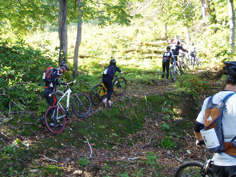 最初は砂利道の林道は走り、スタート地点から約5km