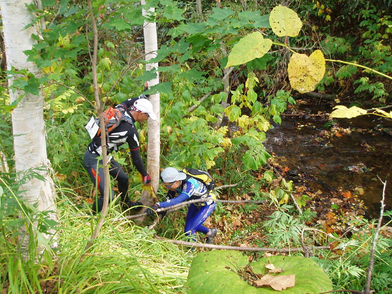 | コメント | : | 川越えもようやく終わり、橋にでた 末端冷え性のシンちゃんにはきつかったかな?ここで、ようやくコースの3分の1くらいを走った この先また300mほど藪を走り、林道へ 地図のダム表示まで約1kmはとても走りやすかった、この間1チーム追い抜いた ダムのところに「BLUE CAR」の表示あり、何だと思ったら青い小型車(廃車)があった ・・・続く その先から藪というほどでもない約1kmの川沿いルートも割と走りやすかった その後、ひらけて民家のある場所に出た、別荘地かな? しかし、地図が分かりづらい、どっちだ?そのうちさっき抜いたチームがすばやく左のルートを行った コンパスで方向を合わせ、地図を確認「おおー、分かったぞ、彼らは正解だ!」 すぐさま追いかけ、追いつく(ここからアスファルト道路) 地図を見ながら方向を確認、「この後左折したらスキー場の除雪車庫があるぞ〜」メンバーに指示しながら走る この間ずーっと若者チームと競り合っている、若者チームのリーダーが「となりのチームだけには負けられないぞ!」宣戦布告してきた おー、よく言った受けて立とうじゃあないか、我々も負けられない |