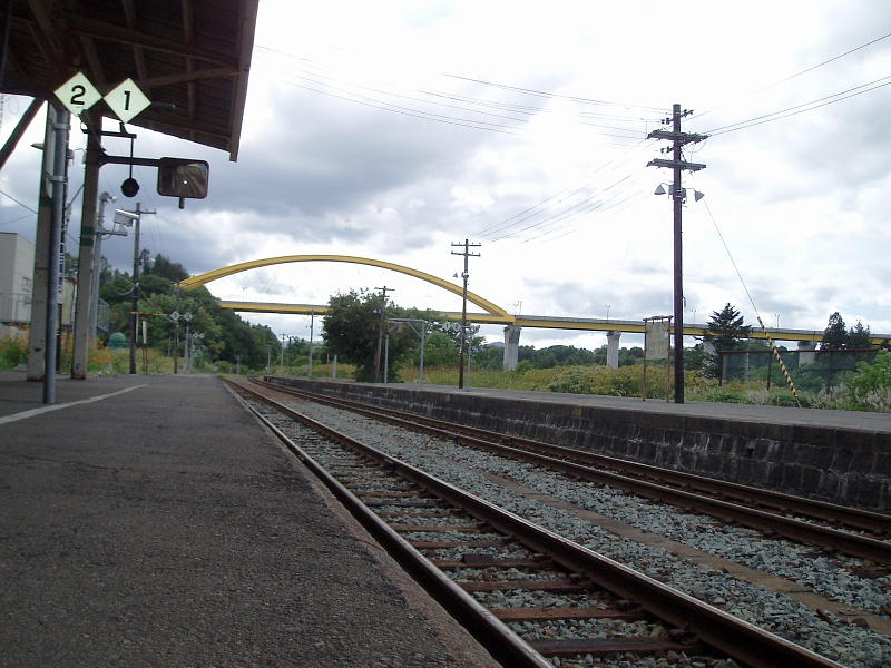 向こうにみえる黄色の橋が「ニセコ大橋」です