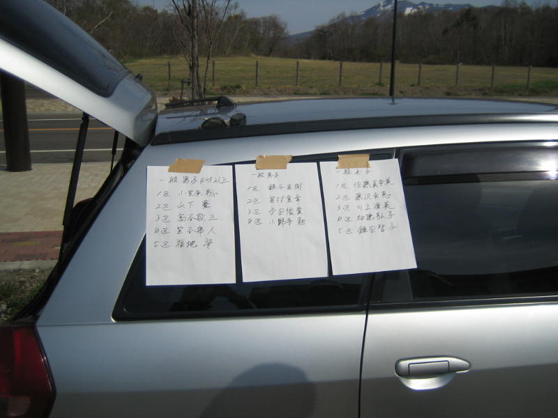 高谷会長の車にメンバー表