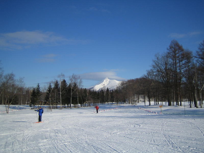 :スタート地点から望む駒ケ岳、林の間からチョコット頭を出しています