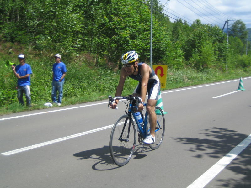スイムで好位置をキープしたサワモトさんだが、バイクで少々ペースダウン