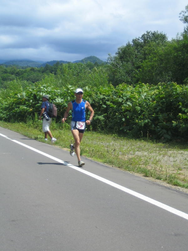 バイクを終え、ランでもハイピッチで前の選手を追い上げるスギさん