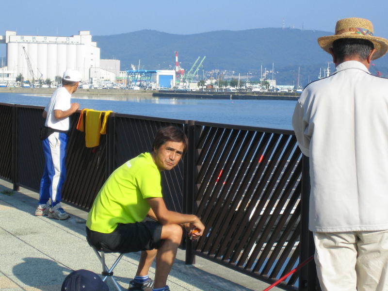 スタートまでだいぶ時間があったので、近くでつりをしていた、爺ちゃんと孫に話しかけてました
