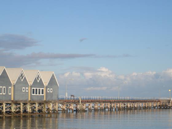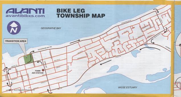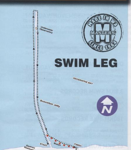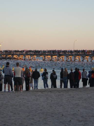 パースから230km南下したところにあるマリンリゾートタウン、バッセルトン。人口2万4千人。 そこがレースの会場となる街。 ジェッティとよぶ、2000m弱の長い木製の桟橋がビーチから沖に突き出ている。 これがこの街のシンボル。 そこがスイム会場。