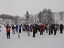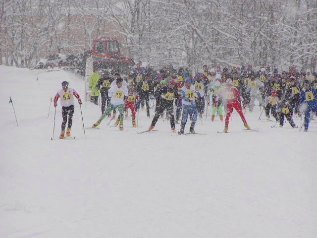 | 数年前に雪不足でコース変更となったことがありましたが、今年は大丈夫そうです。 今年の参加者は名簿では111名、例年大型バスで来ていた室蘭のクラブも今年は欠場したようで、少し寂しい感じがしました。 それでも現地の小中学生が元気一杯で、会場は明るい雰囲気。 ![]() 深々と降る今日の雪は、湿気の含んだスキー板にへばりつくような感じがします。先週のおおたき国際が終わってからWAXがけする時間もなく、前日にWAX生塗りと万能スプレーWAXをかけてきたけど、やっぱりすべりが悪い。 久々に大会参加のナベちゃんもホルメンのWAXを止めてTOKOに変えたらしいけど、試走時点であまりよくないと言っていました。 コースは前日から朝にかけて30cm積もった為、大会事務局が整備するも雪面が柔くスキーやポールが埋まることがありました。 クロカンキッズメンバーは全員、4kmコースを2周回する8kmコースに参加。 受付時にはチラチラ降っていた雪も、スタートしてからは降りかたが強くなり風も出てきました。 コースはスノーモービルで荒れたところが数多くあり、雪面のしっかりしたところを滑らないと脚をとられて転倒する可能性があるので慎重に板を滑らせます。 2周回目になると、歩くスキーの参加者を追い越すことになるので、この場合も追い越す前に声をかけながら接触しないように慎重に滑りました。 ゴールしたときには、選手たちは全身雪だらけの状態で、眉毛も白くまるでサンタの様でした。 完走された皆様お疲れ様でした! ゴール後は暖かい牛乳と豚汁で体の中からホッカホカ。 大会終了後は参加賞のお米も貰ってホクホクでした。