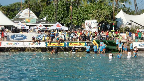 翌日はスイムスタート時間の朝7時に試泳に行くと、もうたくさんの人が見ていて泳いでいる人もかなりの数・・・