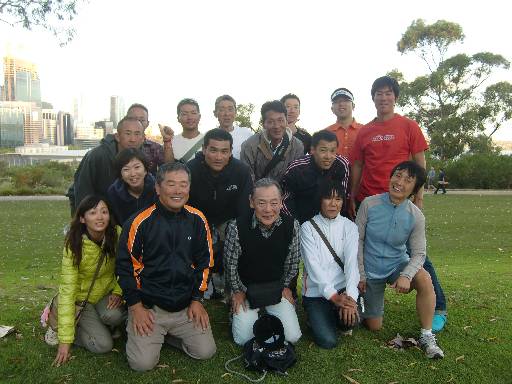 キングスパークで記念写真 空港に向かった。 荷物は少し増えていたが、無事パス。 カンタス空港はありがたい。直行便で成田へ。 12月9日水曜日 朝成田着。 夕方の飛行機で函館に着。 おわり 追: ともかく楽しい1週間でした。 コースは平旦で、高速コース。 風は強いが、林が助けてくれる。 林の中には鳥や、swagmanの幽霊が出そうな、小さくて神秘的な沼も散在して気分を癒してくれる。 低湿なので、気温が高いときでも、あまり暑さは感じない。 強いものではなく、速い者が勝つコースです。 マッキーはハワイ狙いでは向いていないコース。 しかしともかくオージーのノリがよくとても楽しめます。 チャンピオンシップと同等の盛り上がりを体験できる。 初心者、高齢者にもハードルが低くアイアンマンを完走できます。 メタボとアスリートのはざまでうごめく、我が“ナオチャンクラブ”にも向いた大会と思います。 私が脱帽するくらいのすごいおデブさんもちゃんと完走していた。 3年間海外レースに出まくりましたが、来年から仕事の関係でしばらく遠征はおあずけとなりました。 マッキーはどんどん行かせるつもりです。 練習だけはこなし、ふたたび遠征できるようになる日を待つことにします。 ふうさん でした。 |