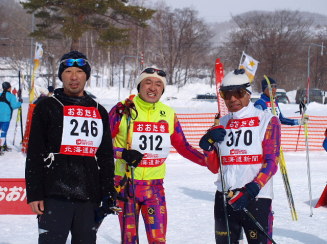 1時過ぎまで飲酒、軽くにすればいいところを結構な深酒、もう40代も後半にさしかかろうかというのに自制心が甘い自分に反省し、5時にバスに乗車。 しかし到着すると現地は結構、風が強く雪も降っている。きついレースになりそうな予感。 練習ではまずまずスキーも滑り、ときどき晴れ間も見えてきたり、天候回復に期待。スタートは結構前のほうに並べた。 スタートするとやはり去年まで後ろの方に並んでいたのとは違いスムーズに滑走ができる。 登りも前が詰まることなく順調である。 しかし頂上が近付くにつれ、風が強くなる。広い場所では吹きだまりもできている。 7キロ通過時点は去年より若干速い。このまま行けば目標の1時間10分を切れるかもしれない・・・・期待が持てる。 後半の下りに入ると登りで抜いてきた30キロの部の人たちに抜かれることが多くなってきた。自分ではまずまずスキーは滑っているような気がしていたがそうでもなかったのだろうか。 結果は1:13:40、去年より3分遅くなっている。7キロでは去年より早かったので、やはり上の方の強風と吹きだまりのせいであろうか? しかし順位は294人中77位 年代別で95人中29位と去年より若干あがっているのでまずまず満足のいく結果です。 後は恒例のキノコ汁に名水亭での入浴。