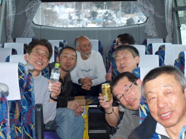 そして、帰りのバスでの大宴会。 それにしてもみんなよく飲みます。凄いです。・・・・自分も前日あれほど飲んだのに、 どんだけ飲むの? いつも楽しいバスツアーですが、今年は18名参加、去年より6名の増。やはり人数が多いと楽しみも増しますね。 |