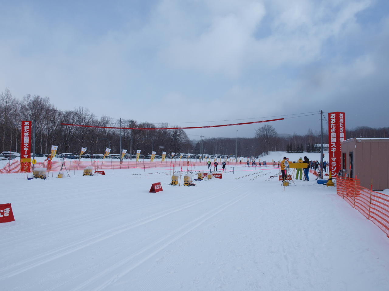 みんな早めにスキーを置いて、スタートポジションを確保します
