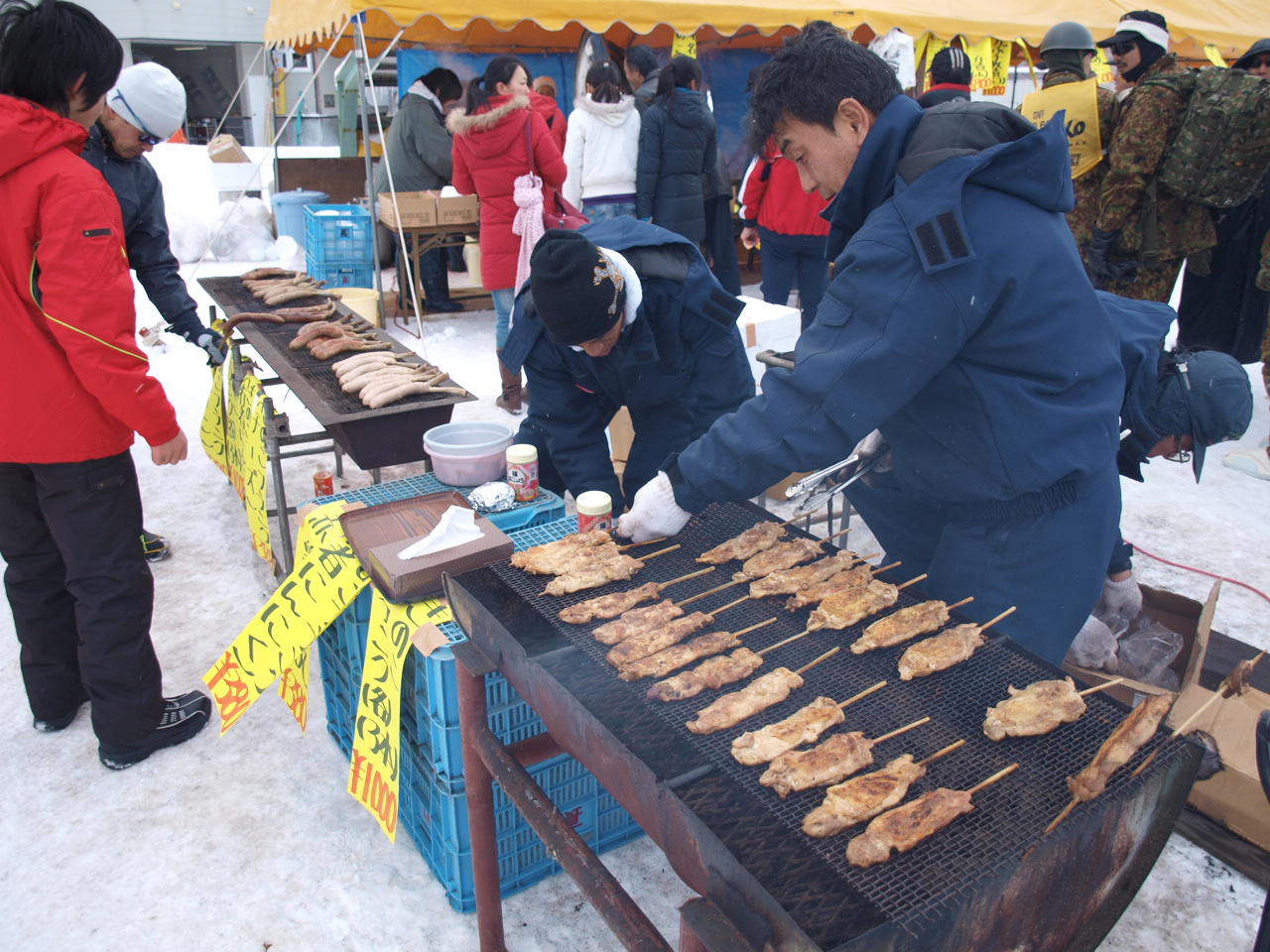 きのこ汁で満足できない人は、串焼きと骨付きウィンナーはいかが?