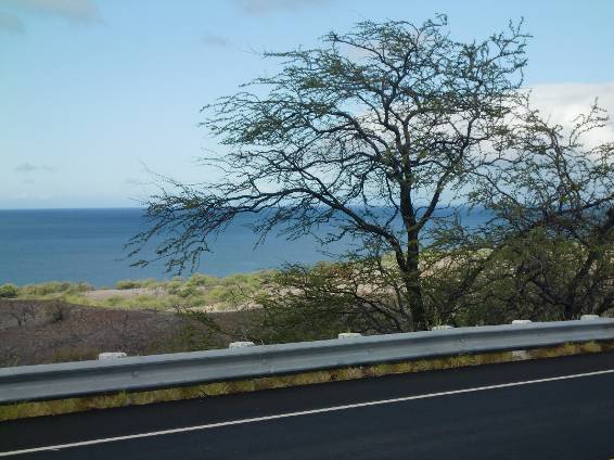 左側(西)は海。絶景です。 やがてハビも北の端が近づき 右に道路が緩やかに湾曲し、 勾配もすこし登りがきつめになるころ、 ものすごい風が吹いてきた。 東の風、コナウィンド。 杏里の歌に、「偏西風を遮るようなコナウィンド」 という一節があった。 コナウィンドは東の風なのだと改めて納得。