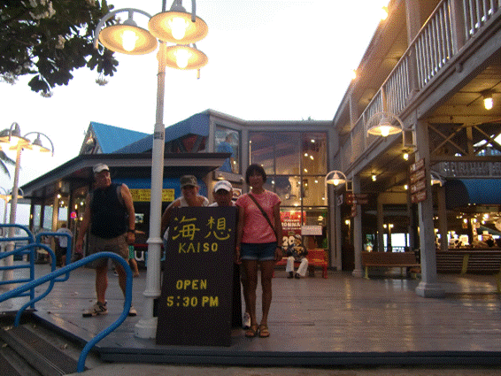 バイクの収納。フォークが少し右寄りに傾いて取り付けてある。フォークは後ろ向きです。 冨田さんの創意工夫の結晶。 馴れないので苦労する。しかし空港での通関ストレスとペナルティ料金を考えるとありがたいことです。 夜のアワードパーティも出ないで、うまいものを食べながら打ち上げをしようということになった。 勝負弁当のお礼をかねて、またゴールで冨田さんのゴールを応援してくれたお礼もかねて、ビストロ横浜にいく。 胃腸が疲れているのでガッツリ系は避けた。 軽めのものを多品目頼み、 最初はビール。 ついで梅酒に移って杯を重ねて、冨田さんの完走を祝い、 我々の西オーストラリアへの再起を誓い、 お開きとなった。 10月15日月曜日。 今日は移動日です。赤浜さんはあと二日コナに残るとのこと。 レースで納得行かなかったので、ハビまで往復バイクで行くと話していた。 ホノルルで乗り換えて、成田へ。