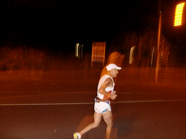 ランスタートする冨田さん。気合が入っています。 バイク途中で脚が攣って遅くなったとのこと。 元気は良さそうだ。 ラン東レッグ折り返しのケアホウまで往復17km。 8-10分/kmの予測で帰りを待つ。 8分30秒/kmのペースで帰ってきた。 あとクイーンKからエナージラボを回る 西レッグの25km。 暗闇と孤独の戦いが待っている。 キロ10分までペースダウンしても間に合う。 たぶん大丈夫だろう。 冨田さんが西レッグで戦っている頃、 ホテルの部屋に戻ると眠ってしまいそうなので、 アリドライブ周辺をくまなく歩き回って探訪した。