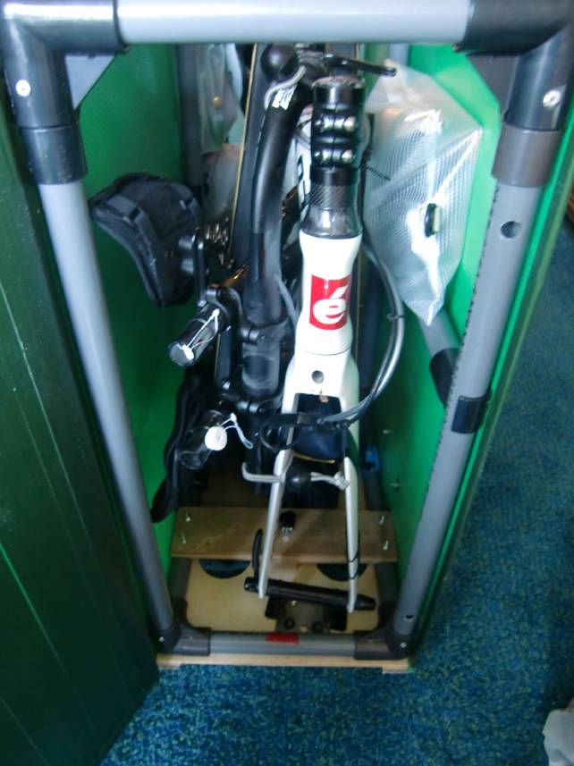 ハーバーのレストランで。 クルーザーや、トローリングの用品ショップなどをのぞいて、しばしリッチな世界をかいま見る。 冨田さんのトライアスロンを始める前の趣味だったので、うんちくもおもしろく聞ける。 ホテルに帰るとバイクの梱包。 冨田さん手製のバイクケースは、辺の長さ合計203cm以内。 小さいだけに、梱包工程は少し多い。 チェーンとリアディレイラーをはずす。