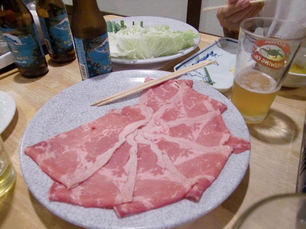 すき焼きの肉。肉はやや厚めでボリュームたっぷり。二人前55ドルと安い。