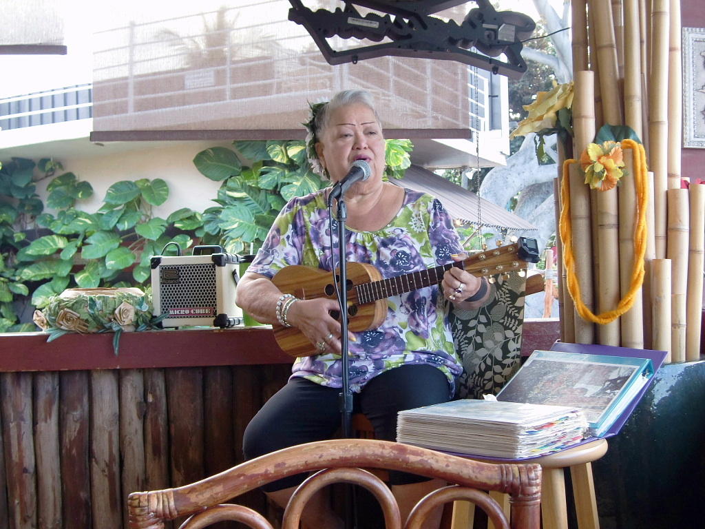 翌朝レース前日朝食。ウクレレでハワイアンを演奏しています。