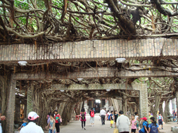 カジュマルの大木。これで一本の木です。 木陰で一息。 最後に昨夜見た中央街をみて終わる。 参加登録してゼッケン、トランジッションバックなどを受け取る。